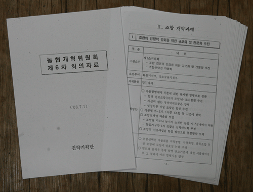 이 입수한 농협개혁위원회 제6차 회의자료에 따르면 농협은 최원병 회장 1인 체제를 유지하기 위한 전략을 기획 중이다.