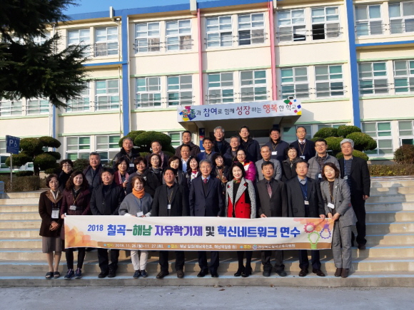 [일요서울 l 대구 김을규 기자] 경상북도칠곡교육지원청(교육장 권순길)은 칠곡-해남 교육교류 활동과 미래 인재 양성에 협력하고, 자유학기제 및 혁신교육네트워크 운영을 활성화하기 위해 지난 26일~27일, 양일간초,중학교장 및 교육지원청 관계자 등이 전라남도 무지개교육지구인 해남교육지원청 관내 학교를 방문해 혁신교육활동을 나누는 만남의 시간을 가졌다.