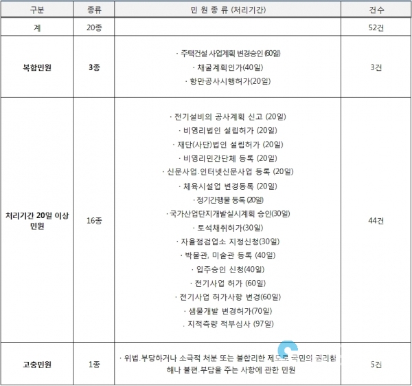 - 20종 민원에 대해 전·후임자가 공동관리 및 문자알림서비스 시행