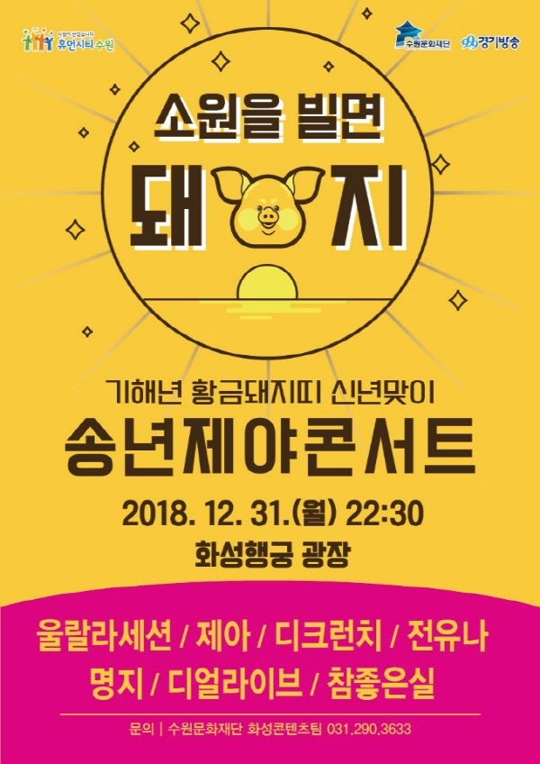 12월 31일 밤 10시 30분부터 시작되는 송년제야콘서트는 수원문화재단과 경기방송이 공동 주관하여 라디오 방송으로 선보여진다.
