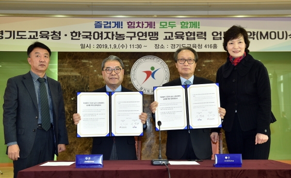 [일요서울|수원 강의석 기자] 경기도교육청은 한국여자농구연맹(총재 이병완)과 경기도교육청에서 ‘학생들의 건강한 삶과 스포츠 복지 실현’을 위한 업무협약을 9일 체결하고, 학생 체육 활성화를 위해 상호 협력하기로 했다.