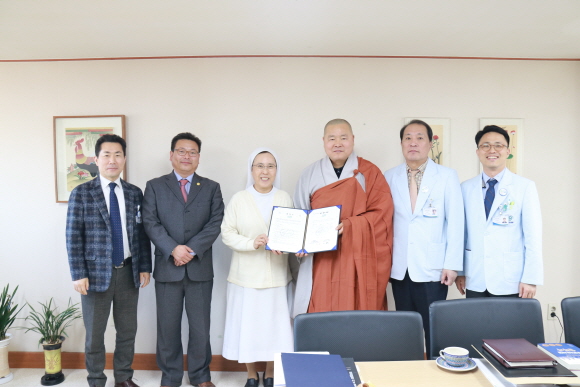 [일요서울 l 대구 김을규 기자] 대구파티마병원(병원장 박진미)은 11일 본관 5층 병원장실에서 대구불교총연합회(회장 효광스님)와 업무협약식을 가졌다.