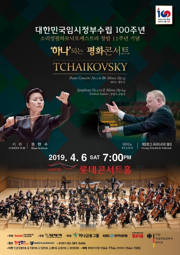 특히 대한민국임시정부수립 100주년을 기념해 민족적인 색채가 묻어나는 차이코프스키의 작품들로 펼쳐지는 이번 공연은 현란한 테크닉과 섬세한 음악적 해석력을 선보이는 쉥크의 피아노 협주곡 제1번으로 우리 민족의 운명적 서사를 표현할 예정이다. 누구에게나 익히 잘 알려져 있는 차이코프스키의 ‘운명의 교향곡’을 대편성한 오케스트라 선율로 들려주는 뜻깊은 음악회 현장을 만들어 갈 예정이다.