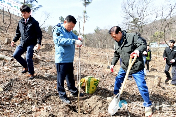 이날 간단한 식전행사를 마친 참여자들은 나무심기 작업요령에 대한 설명을 듣고 2인 1조로 나뉘어 작업했다. 지난 3일~4일에는 읍‧면사무소에서 매실‧대추나무 등 3,700여 본을 주민들에게 무료로 나누어 주는 행사가 진행되기도 했다.