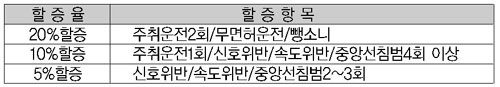 무었보다 중요한 것은 무사고다. 사고발생시 할인 할증율이 매년 7~8%씩 떨어져서 최저 40%까지 낮아지기 때문이다. 사고 내용에 따라 최고 250%까지 할증되며, 사고로 인한 할인 할증율은 3년간 적용됨을 기억해야 한다.