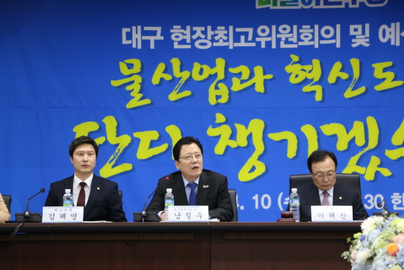 이해찬 대표의 주재로‘대구 예산정책간담회’가 오전10시부터 진행되었으며 남칠우 대구광역시당위원장은 환영사를 통해 “오늘 예산정책간담회를 위해 대구를 찾아주신 이해찬 대표를 비롯 당지도부들을 진심으로 환영하며 감사말씀드린다"며 말문을 열었다.