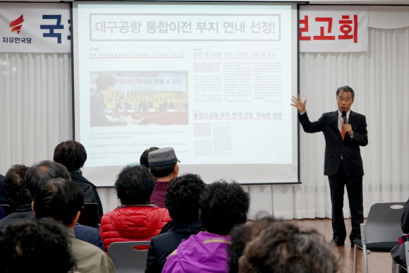 정종섭 의원은 지역의 숙원사업인 ▲동대구로~유통단지 연결도로 본격 추진, ▲정부의 대구공항 통합이전 최종부지 연내 선정 발표, ▲군 공항 소음피해 대책 및 지원법 대표발의 등의 성과를 설명했다.