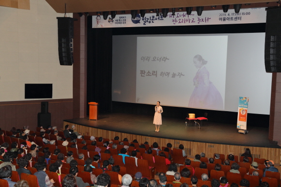 박애리 명창은 ‘이리오너라~판소리하고 놀자’라는 주제로 참석자들과 함께 소리하며 판소리 장단과 추임새를 알기 쉽고 재미있게 설명했는데 이날 참석한 구민 400여명은 이구동성으로 최고의 강연이었다며 큰 만족감을 나타냈다.