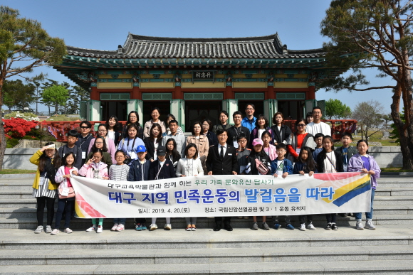 [일요서울 l 대구 김을규 기자] 대구교육박물관이 3.1운동 100주년을 맞아 ‘우리 가족 문화유산 답사기’ 체험 프로그램의 첫 순서로, 국내 최대 독립유공자 국립묘지인 국립신암선열공원을 방문해 단충사에서 참배, 헌화하고 가족과 함께 ‘대구지역 민족 운동의 발걸음을 따라’ 라는 주제로 국립신암선열공원 묘역을 답사하는 시간을 가졌다.