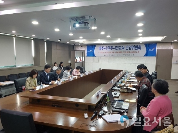 [일요서울|파주 강동기 기자] 파주시는 지난 24일 시청 비즈니스룸에서 파주시 민주시민교육 운영위원회를 개최해 파주시 민주시민교육 기본계획 연구용역 최종보고회를 진행했다.