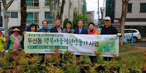지난 24일 들안길 프롬나드 운영위원회(위원장 성윤희) 위원과 주민 40여명이 참석한 가운데 두산동 행복마을 정원만들기 사업을 시작했다.