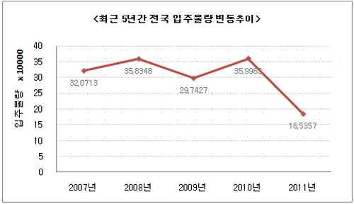 새 아파트가 준공돼 입주를 시작하면 일반적으로 주변 아파트 시세가 약세를 보인다. 수요와 공급의 균형이 일시적으로 깨지면서 집주인의 입지는 줄어들고 매수자 우위 시장이 상당 기간 계속되기 때문이다. 하지만 아쉽게도 새해 입주물량은 수요자 입장에서 보면 만족스럽지 못하다. 부동산뱅크에 따르면 토끼띠해인 2011년 전국 아파트 입주물량은 올해의 절반 수준인 약 18만 가구로 조사됐다. 특히 서울·경기·인천은 총 10만420가구가 예정돼 있는데 이 역시 올해 수도권 입주물량의 50% 수준이다. 지역별로는 경기도가 74개 단지에서 5만 716가구로 공급물량이 가장 많다. 이어 ▲서울 3만963가구 ▲인천 1만8741가구 ▲부산 1만4396가구 ▲충남 1만711가구 등의 순으로 나타났다.