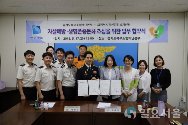 [일요서울|의정부 강동기 기자] 의정부시자살예방센터(센터장 송주연)와 경기도북부소방재난본부(본부장 조인재)가 5월 17일 자살예방 및 생명존중문화 조성을 위한 업무협약을 체결했다.