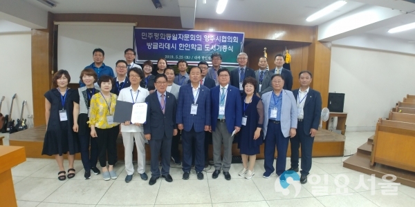 [일요서울|양주 강동기 기자] 민주평통 양주시협의회(회장 황영희)는 지난 25일 방글라데시 다카 한인학교를 방문, 학생들을 위해 5백만 원의 도서기금을 전달했다.