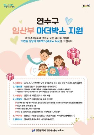 [일요서울 | 인천 조동옥 기자] 연수구가 아이 낳고 키우기 좋은 도시를 만들기 위해 관내 임산부들의 출산준비에 실질적이고 경제적인 도움을 주고자 8월부터 15만원 상당의 임산부 마더박스(Mother Box)를 지원한다.임산부 마더박스는 2가지 세트(기본세트, 외출세트)이며, 대상자는 이 중 1가지 세트를 선택할 수 있다.
