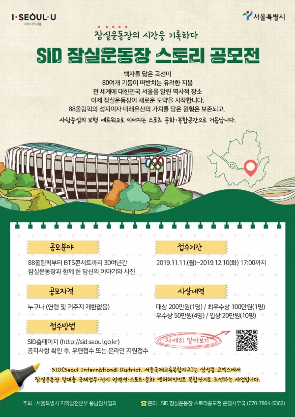 1988년 서울올림픽부터 방탄소년단(BTS)콘서트까지 30여년간 잠실운동장과 함께 한 시민의 이야기 'SID(서울국제교류복합지구) 잠실운동장 스토리 공모전'이 열린다.