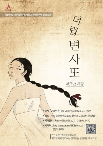 [일요서울 |인천 조동옥 기자] 인천대학교가 오는 28일 오후 7시 30분 송도캠퍼스 23호관 공연장에서 무료로 '더럽 변사또' 공연 한다.
