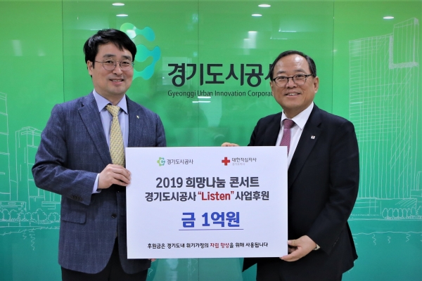 [일요서울|수원 강의석 기자] 경기도시공사는 4일 용인 포은아트홀에서 대한적십자사 경기지사와 함께 ‘2019 Listen 희망나눔 콘서트’를 개최한다고 밝혔다.