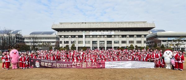 인천시청이 붉은 복장의 산타클로스 봉사자들로 가득 메워