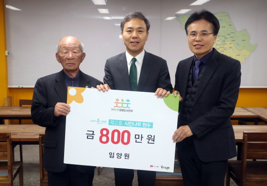 이 자리에서 임양원 씨는 “종합경기장은 내 자식과도 같은 이름이다”며 “이제는 미래의 우리 아이들에게 좋은 숲을 물려주는 데 조금이나마 도움이 되었으면 하는 바람에서 800만원을 후원하게 됐다”고 밝혔다.