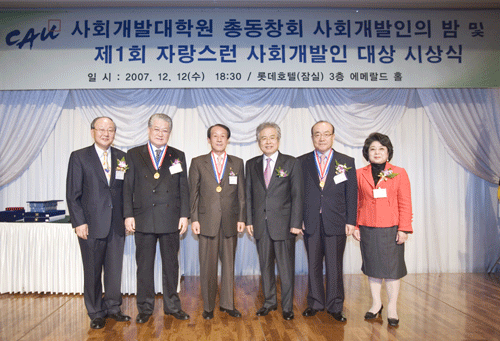 이들은 최근 서울 잠실 롯데월드호텔에서 열린 ‘중앙대학교 사회개발대학원동창회(회장 김충식)’ 주최 제1회 자랑스런 사회개발인 대상 시상식에서 상패와 부상을 받았다.