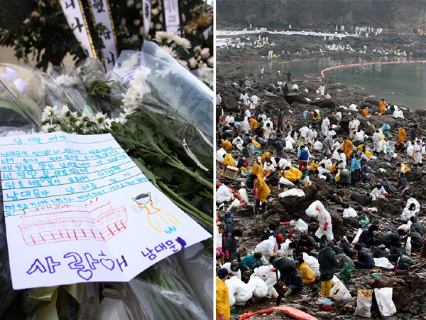 태안기름유출사고가 지난해 12월 7일 일어나자 온 국민들이 힘을 모아 오염된 해안 살리기에 팔을 걷어 부치고 나섰다. 환경전문가들은 태안반도가 예전의 모습을 되찾기 위해선 상당한 시간이 걸릴 것이라고 내다봤다.