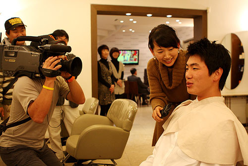 지난 6일 MVP시상식을 앞두고 김광현이 미용실에서 머리를 손질하고 있다.