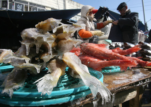 설 대목을 목전에 두고 대형마트와 백화점은 매출이 두 배로 뛰어올라 분주하다고 한다. 그러나 전통시장은 경기가 꽁꽁 얼어 대조적인 모습을 보이고 있다. 구제역과 조류인플루엔자(AI), 한파 등으로 세수 용품의 공급마저 부족한데다 값마저 엄청 뛰어올랐다. 손님들의 발길이 뜸한 경동시장 노점상의 생선에 고드름만 맺혀 있어 설 풍경을 말해주는 듯하다.