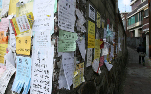 지난 3월 2일 중앙대 앞 어두운 주택가 골목을 한 신입생이 걸어가고 있다. 개학을 했지만 기거할 곳을 찾지 못한 대학생들이 저렴한 하숙방을 찾아 서울 도심을 헤매고 있다. 예전 같으면 기숙사에 머물겠지만 기숙사비마저 100만 원을 훌쩍 넘는 현실에 엄두를 내지 못하고 있다. 또 대학교 주변이 뉴타운으로 개발되고 있어 학생들이 머물만한 하숙집과 자취방은 찾기가 힘든 현실이다. 대학교는 서울에 있지만 방은 수도권에서 통학해야할 학생들도 부지기수다. 대학교를 졸업한 일반 서민들도 마찬가지 현실이라는 점에서 뒷모습이 더 서글퍼 보인다.