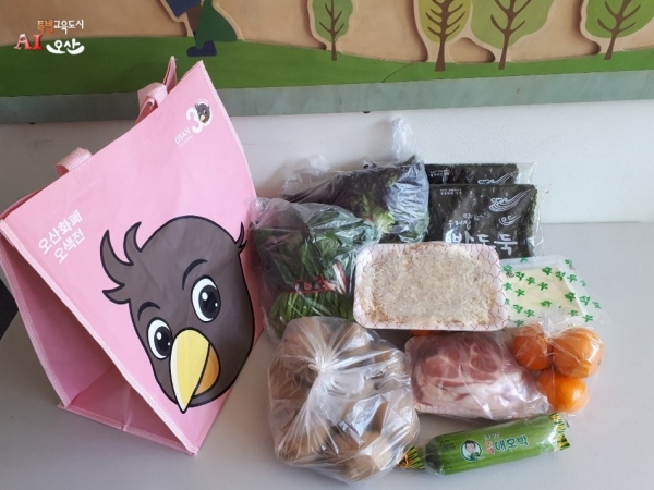 오색시장상인회에서 구입한 목살, 구운 김, 두부, 상추, 애호박, 시금치, 감자, 돈까스, 과일 등으로 구성된 꾸러미는 아동통합사례관리사를 통해 각 가정에 전달했다.