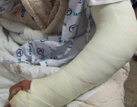 ▲ 겨울철 낙상사고는 방치하면 상태를 악화시킬 수 있으므로 조기에 치료를 하는 것이 좋다. 낙상사고로 인해 손목과 팔에 골절상을 입은 환자