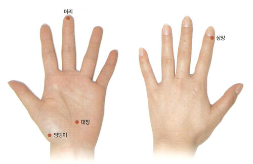 처방 : 대장상응점, 머리상응점, 손바닥 쪽 엉덩이상응점, 상양