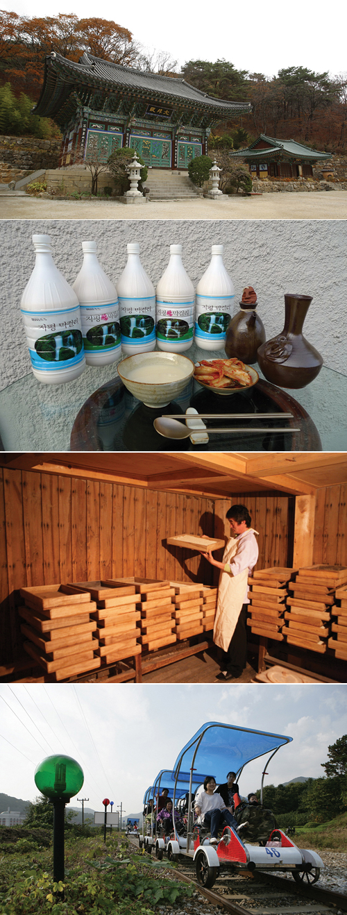 (위부터 차례대로) 용문사 - 지평주조 막걸리 - 지평주조 종국실 -레일바이크