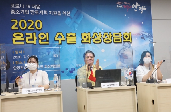 [일요서울|안양 강의석 기자] 안양시는 9일 비즈니스 화상회의실(안양창조산업진흥원 본원 7층)에서 코로나19 확산으로 위축된 관내 중소기업 해외 판로개척 및 수출 활력 제고를 위해 온라인 화상 수출상담회를 개최하였다.