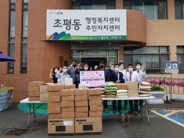 [일요서울|오산 강의석 기자] 오산시 가장동에 소재한 ㈜더가든오브내추럴솔루션(대표 장두식)은 지난 27일 초평동행정복지센터를 방문해 양곡 10kg 66포(275만원 상당)와 손세정제 200개, 컴퓨터 9대(모니터 포함)를 기탁했다.