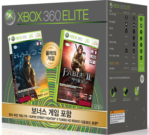 4월 29일부터 주요 온라인 쇼핑몰 및 오프라인 게임전문판매점 등에서 판매되기 시작한 ‘Xbox 360 Elite 특별 한정 패키지’와 ‘Xbox 360 Pro 특별 한정 패키지’는 인기 대작 타이틀 ‘헤일로 3’, ‘페이블 2’ 등을 보너스로 구성했다.