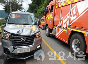27일 오전 7시 화천군 하남면 논미리 도로(춘천 → 화천간)상 산비탈 나무가 강풍에 쓰러지며 마을버스(스타렉스 15인승)를 덮쳐 단독 교통사고가 발생했다.