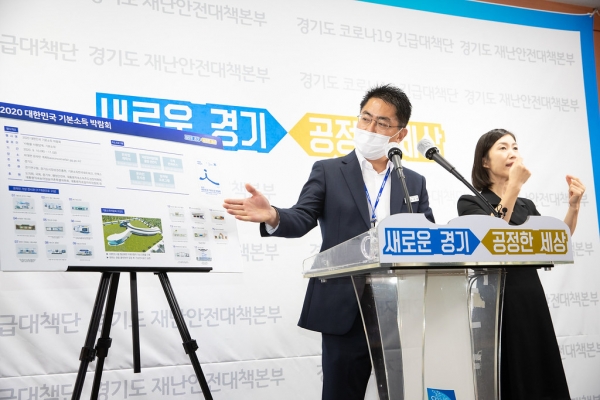‘2020 기본소득 박람회’ 추진단장인 김재용 경기도 정책공약수석은 8일 도청 브리핑룸에서 기자회견을 열고 “경기도에서 시작한 기본소득 정책의 의미를 대한민국과 세계에 널리 알리고자 ‘사람을 사람답게’라는 슬로건 아래 2020 대한민국 기본소득 박람회를 개최한다”면서 “코로나 시대에 기본소득·지역화폐 정책축제인 기본소득 박람회를 국민들께서 안전한 환경에서 즐길 수 있도록 비대면 온라인으로 준비했다”고 밝혔다.
