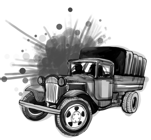 14병기 급수차의 앞바퀴가 흙탕물이 고인 커브 지점에 들어서자 천지를 진동하는 폭음과 함께 차량은 산산조각이 나며 하늘로 붕 떠올랐다. 미군 병사들의 살 조각들이 차량의 본 넷 위에 우박처럼 떨어졌다.