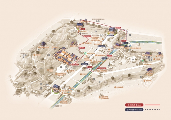 먼저 ‘화성로담’은 화성을 중심으로 한 문화역사풀코스로 60분 코스다. 행궁광장에서 출발해 행리단길~나혜석생가터~화서문(서북공심돈)~장안문~화홍문(방화수류정)~수원천~수원화성박물관~여민각을 거쳐 행궁광장으로 돌아온다. 평일은 오후에만 4회, 주말은 오전부터 6회 운영 예정이다.
