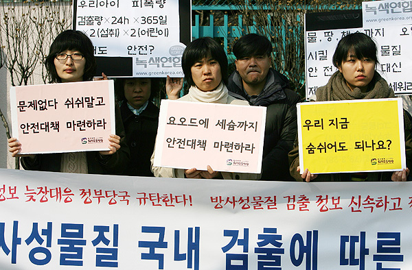 ⓒ 정대웅 기자 30일 세종로 정부중앙청사 정문 앞에서 핵사고 피해지원 및 핵발전 정책 전환 공동행동 회원들이 방사성 물질 국내 검출에 따른 시민사회단체 기자회견을 갖고 정부의 대책을 촉구하고 있다. 정대웅 기자 photo@dailypot.co.kr 저작권자 © 일요서울i 무단전재 및 재배포 금지 정대웅 기자 다른기사 보기