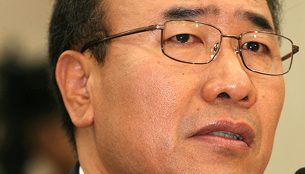 4일 국회에서 열린 검찰총장 후보자 인사청문회에서 한상대 내정자가 울음을 참고 있다. 한 내정자는 'MB와 친형님과의 관계'를 묻는 질문에 한동안 말을 잇지 못하고 울먹였다. 정대웅 기자