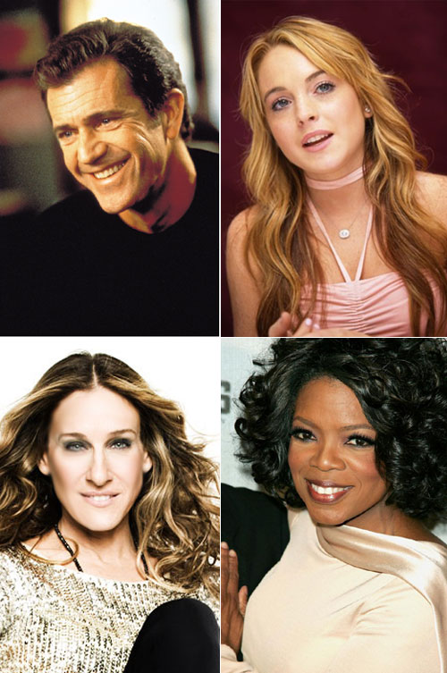 멜 깁슨 · 린제이 로한 · 오프라 원프리 · 제시카 파커 (왼쪽상단부터 시계방향)