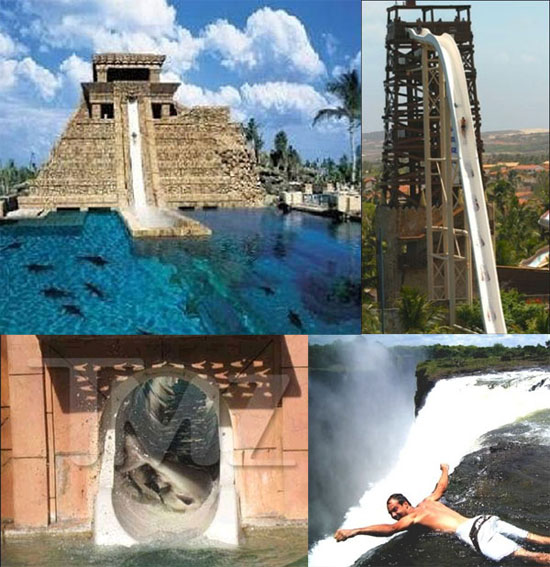 사진 속에 등장한 ‘가장 무서운 수영장’ 중 하나는 카리브해 바하마에 있는 유명 호텔 수영장으로 슬라이드를 타고 내려가면 상어 수족관을 지나가도록 되어 있다. 상어수족관과 수영장은 50cm 벽으로 분리돼 있다.