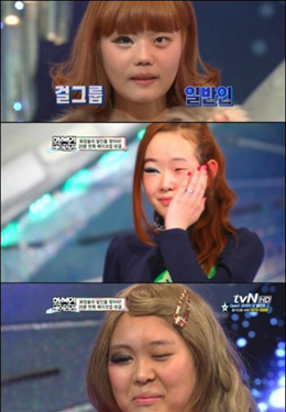 이날 방송에서 이들은 민낯으로 출연해 20분간 메이크업을 한 뒤 새로운 인물로 바뀐듯한 놀라운 변신 과정을 보여줬다.