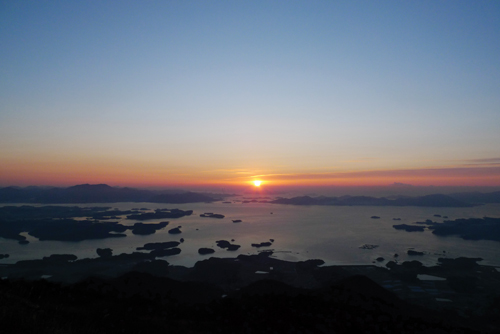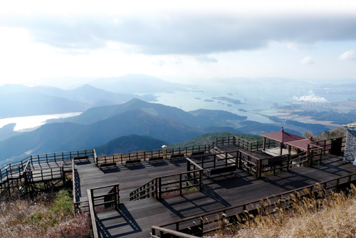 여덟 시가 넘어 온전히 형체를 드러낸 섬과 바다와 하늘은 일출이 아니어도 그 자체로 충분히 매혹적이다. 방아섬, 굴섬, 솔섬 등 수많은 섬들은 적당한 간격으로 올망졸망 정답고, 멀리 사천대교와 창선대교도 눈에 들어온다. 남해대교는 연이어 누운 세 개의 봉우리에 가려 보이지 않는다. 헬기장에서는 지리산 천왕봉과 반야봉, 노고단도 볼 수 있다.