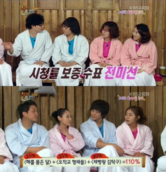 이날 방송에서 정웅인은 MBC 수목드라마 ‘해를 품은 달’을 언급하며 “이 친구(전미선)만 지금 다른 작품을 하고 있다”며 “전미선이 출연한 ‘해품달’, ‘오작교 형제들’, ‘제빵왕 김탁구’ 시청률을 합치면 110%다”라고 말해 주위의 이목을 끌었다.