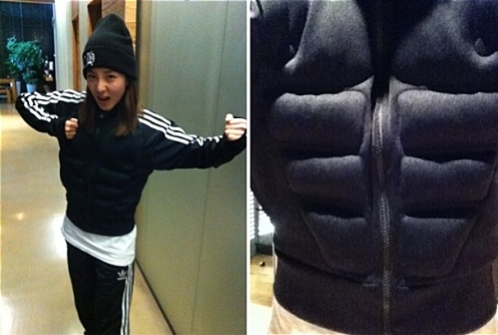 산다라박은 지난 28일 자신의 트위터를 통해 “나도 복근 있다! 킹콩 다라! 변신! 신상 디다스 져지에요! 귀엽죠? 열심히 연습 중 바쁘다 바빠!”라는 글과 함께 귀여운(?) 복근 사진을 공개했다.