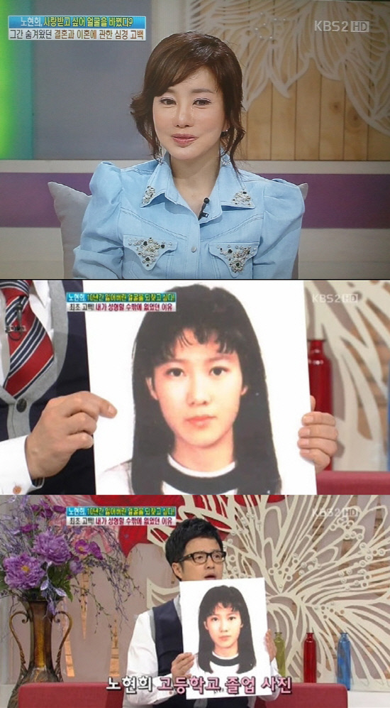 이날 방송에서 노현희는 “전남편과 대중에 사랑받고 싶은 마음에 성형을 계속하게 됐다”며 “남편에게 사랑받고 싶지 않은 여자가 어디 있겠느냐. 한 번이라도 나를 바라봐 주길 원했다”고 털어놨다.