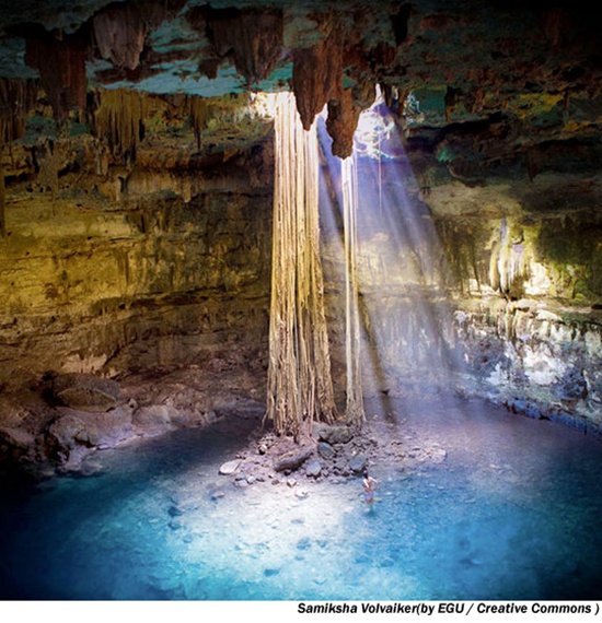 이곳은 마야인들에게 성스러운 못으로 인식된다고 한다. 공개된 사진은 햇빛이 지하를 밝혀 더욱 신비스런 분위기를 연출하고 있다.